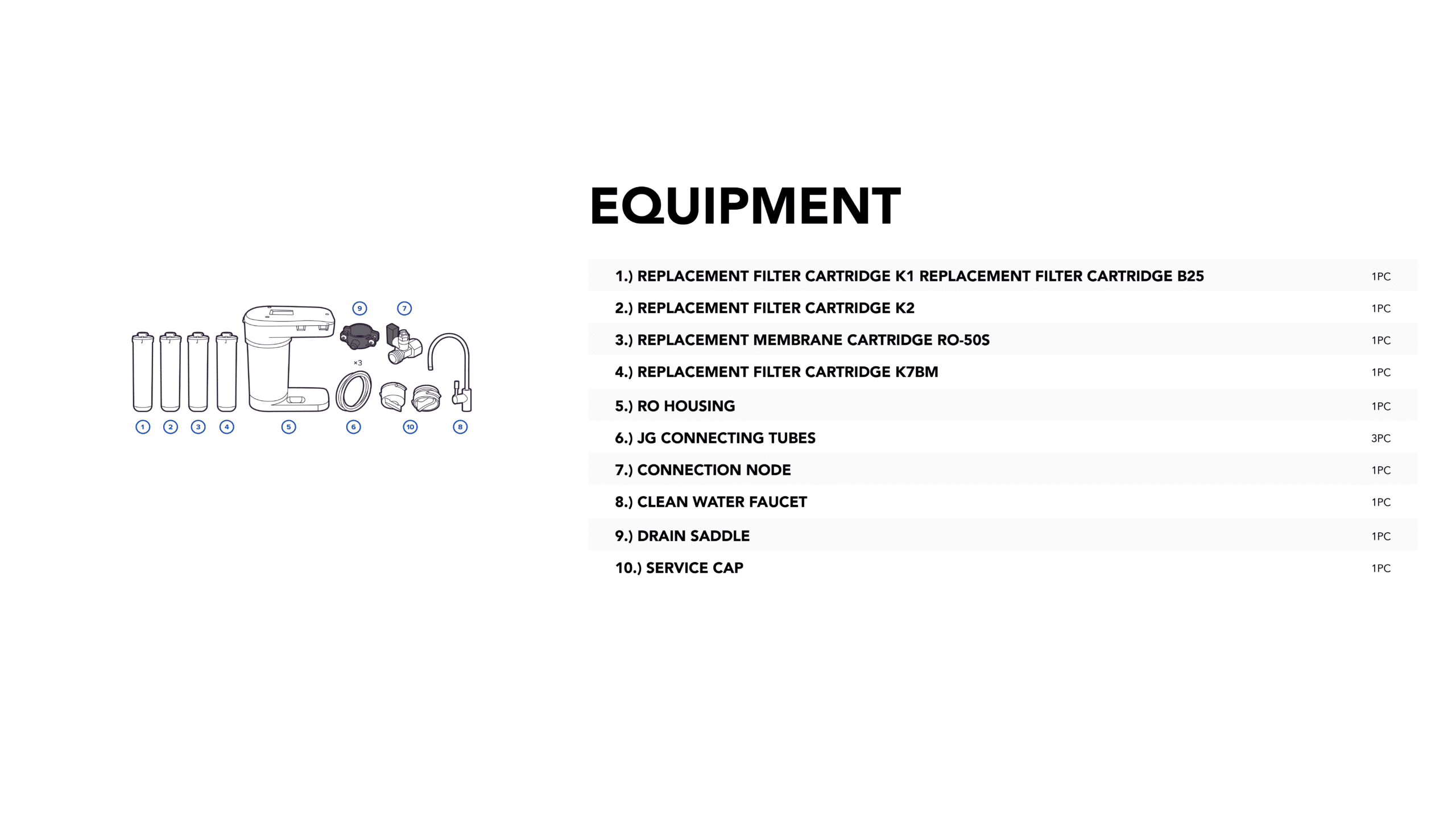 The 2-in-1 prefiltration cartridge K1 performs the work of two cartridges for the most effective filtration of coarse particles up to 3 microns like sand or clay and protection of RO membrane. The latter serves as a long-lasting shield against any toxic substances, heavy metals, pesticides, bacteria, and viruses.