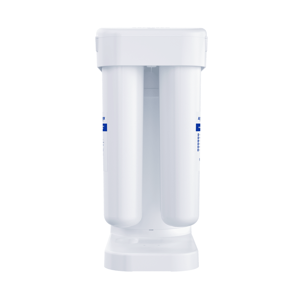 The system is designed differently compared to the classic RO systems. Thanks to its innovative water-on-water tank, it takes up half the space under the sink, saves up to 9 tons of water per year, and works even under low pressure in the water pipes.
