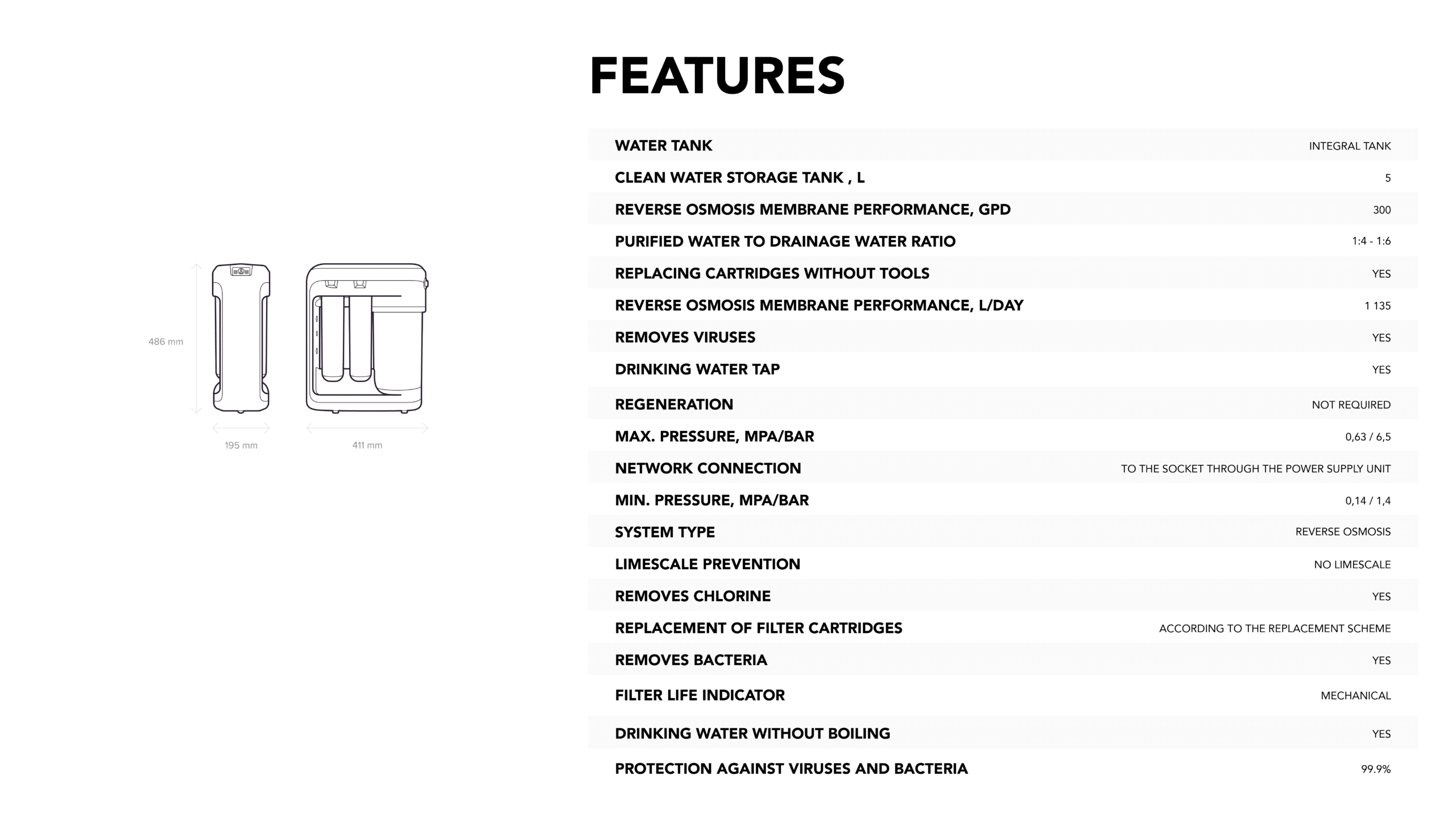 Reduces common tap water contaminants including chlorine, organic compounds, heavy metals, rust, phenols.