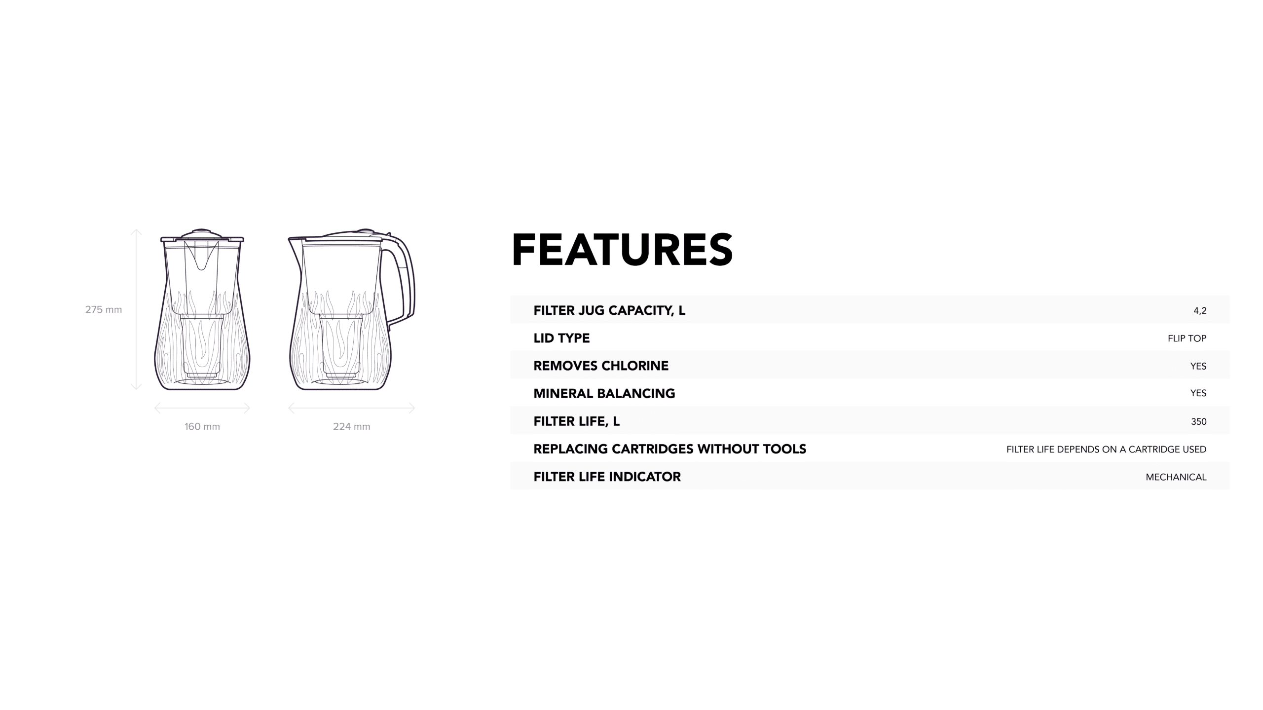 This extra sturdy water jug withstands falls and other housekeeping shocks while carrying the idea of Aquaphor country-style blown jugs series. A touch of texture on the Orlean`s curvy body is softly catching the eye.